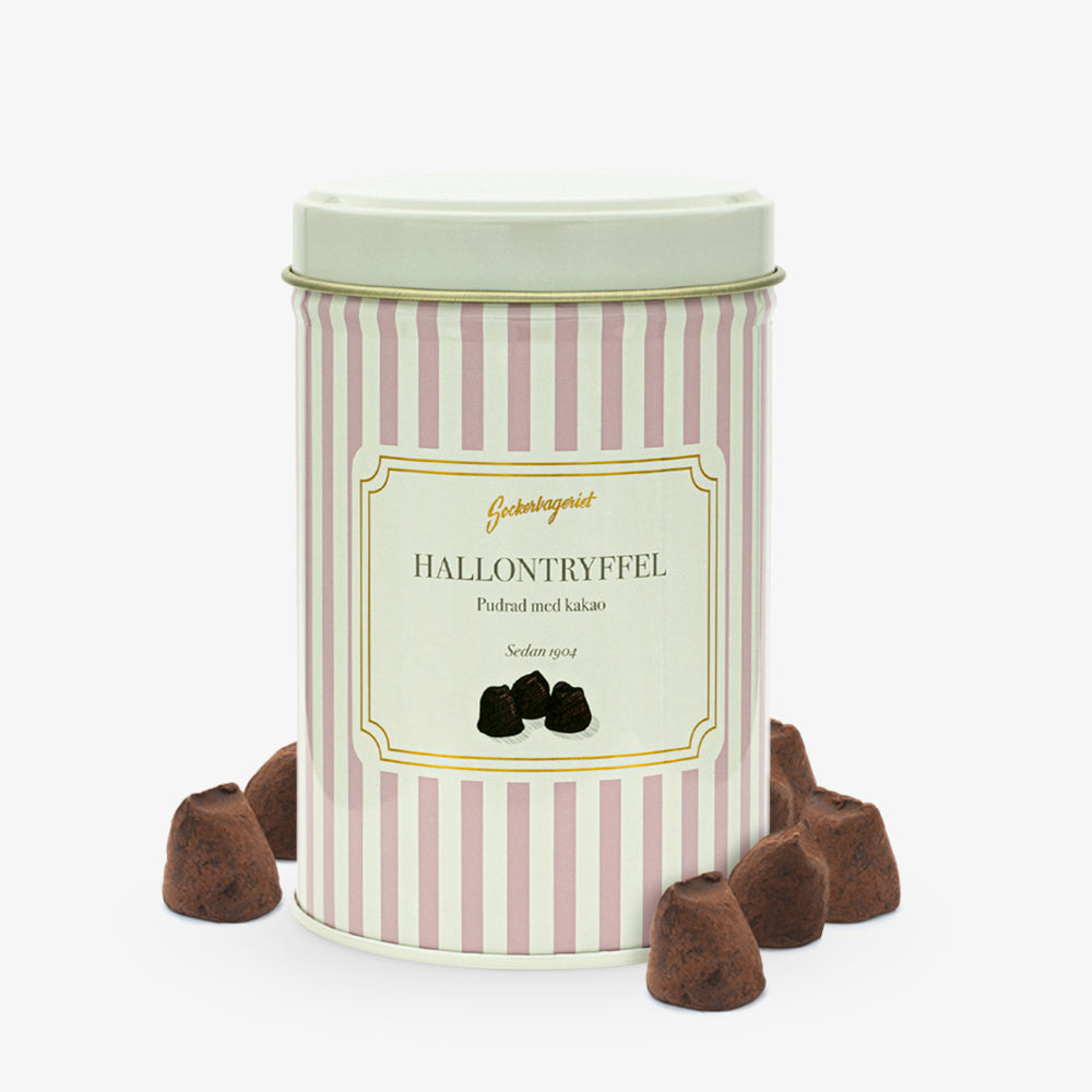 Härligt läckra tryfflar med hallon smak som är oemotståndligt goda och känns precis som om de vore hemgjorda. Nu i vackra plåtburkar.