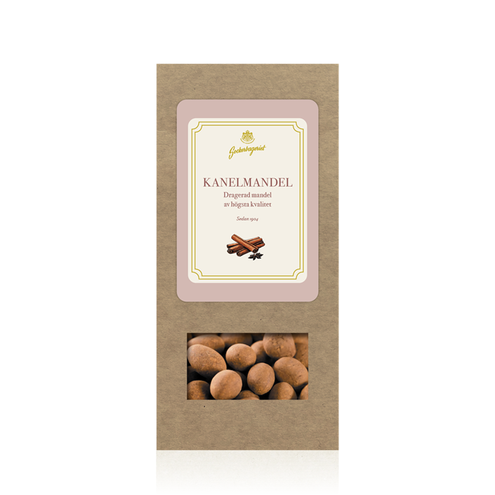 Mandeldragé av högsta kvalitet med kryddig smak av kanel.