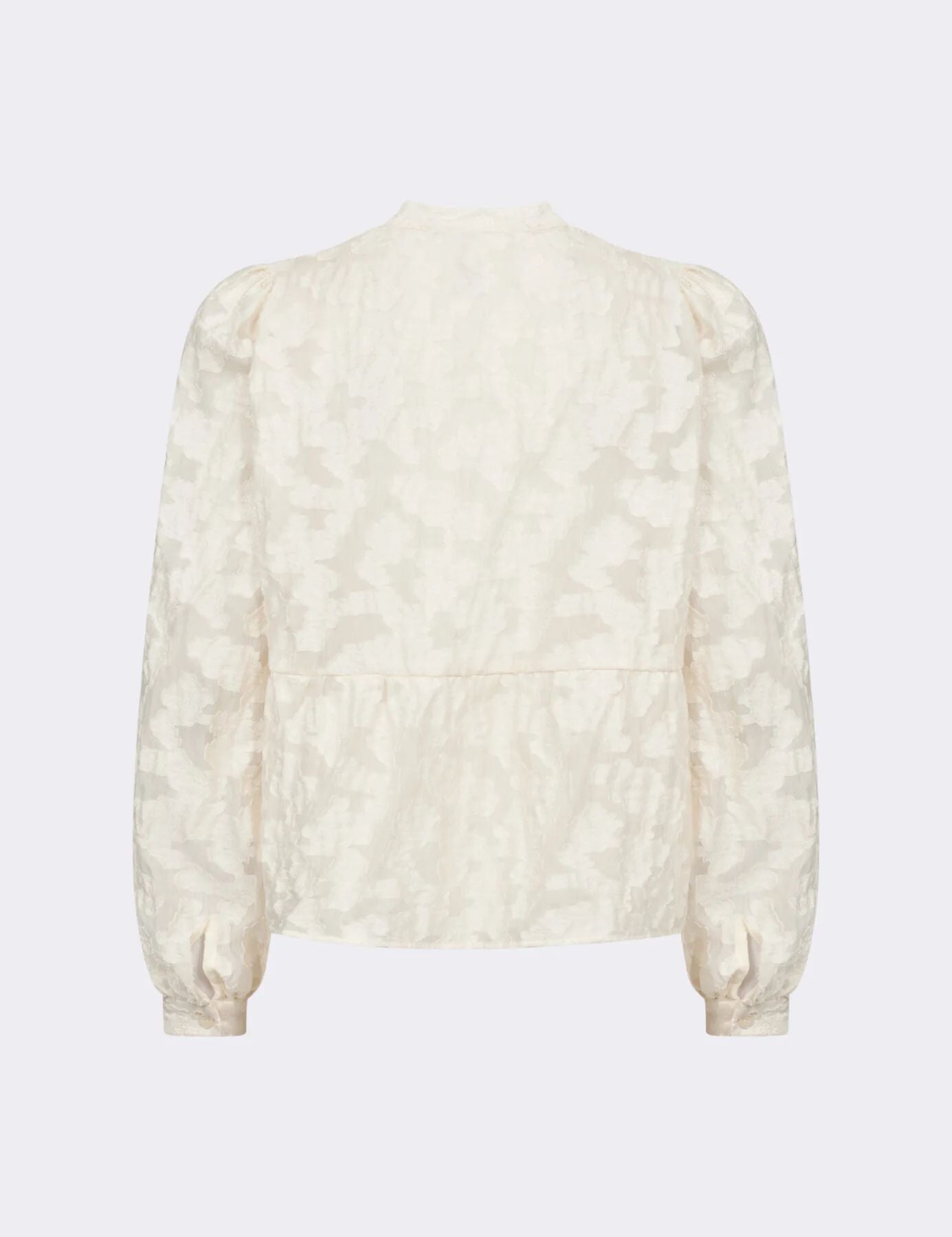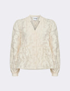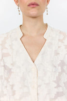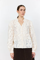 NOVELLE är en elegant blus från Levete Room, tillverkad av 50% polyamid och 50% polyester. Blusen har en V-ringning, knappstängning framtill, en knytning i midjan och ett subtilt texturerat mönster. Matcha den med skräddarsydda byxor för en snygg look, eller med ett par jeans med lös passform för vardagsbruk.