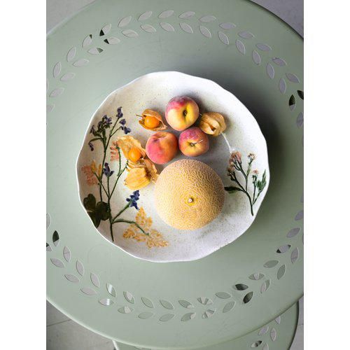 Malva skål är fin att ha som dekoration eller som ett uppläggningsfat. Skålen är gjord i porslin med ett blommönster.