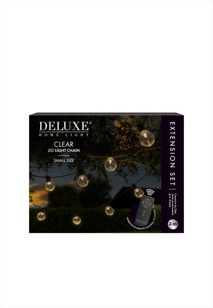 Extra LED ljusslinga 3 meter med 10 lampor som passar till startsetet DH-CLEAR-S0001 LED Ljusslinga Clear Starter set Small. Ljusslingan kan användas både inomhus och utomhus då den är vattentät (IP44).