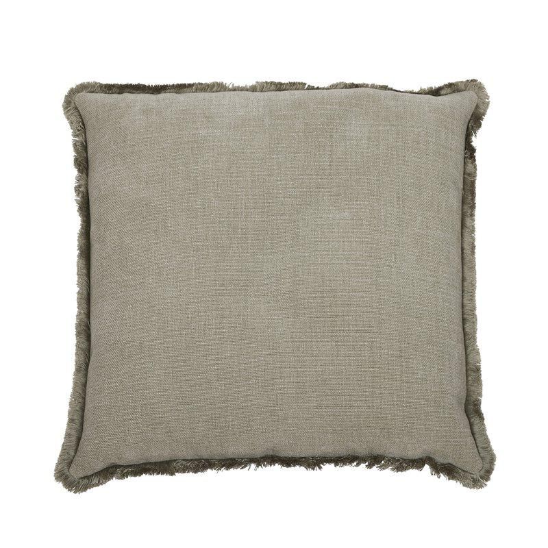 Enfärgat kuddfodral med en fin, subtil lyster, runtom löper en dekorativ, nätt frans som tillför en trendig och sofistikerad känsla.