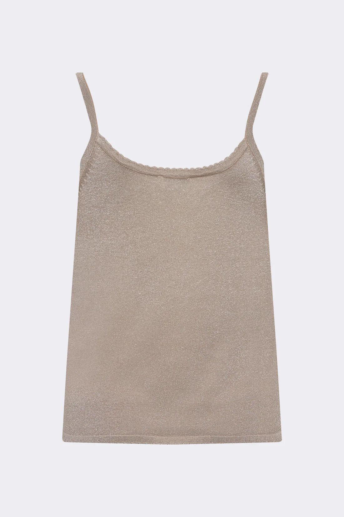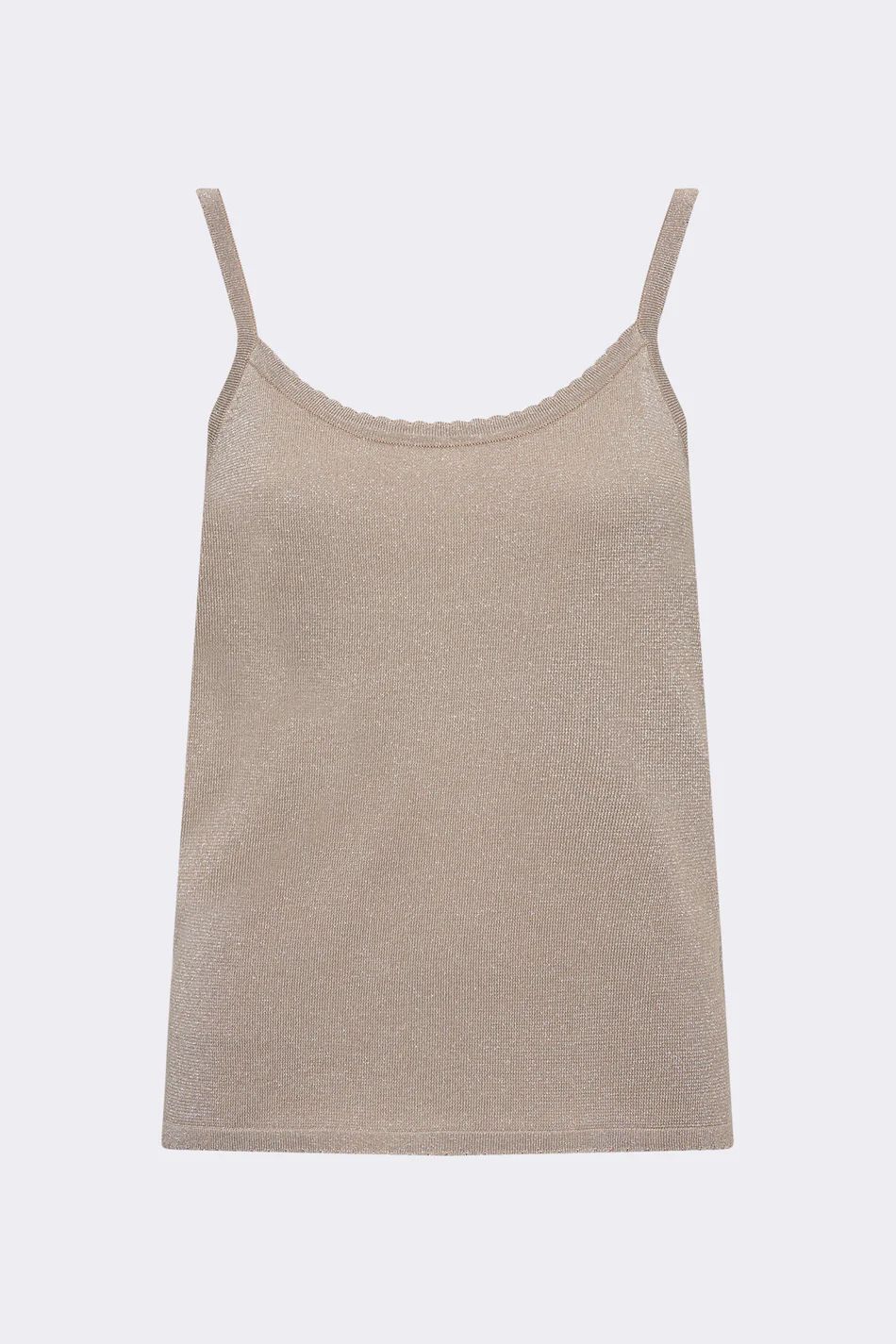 RALLE är en härlig topp tillverkad av 78% viskos, 22% lurex. Denna eleganta topp har en rund halsringning och tunna band, med en skimrande textur. Kombinera den med skräddarsydda byxor och snygga klackar för en sofistikerad look