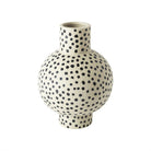 Charmig vas från Mogihome tillverkad i keramik, prydd av ett svartprickigt mönster mot en beige botten.