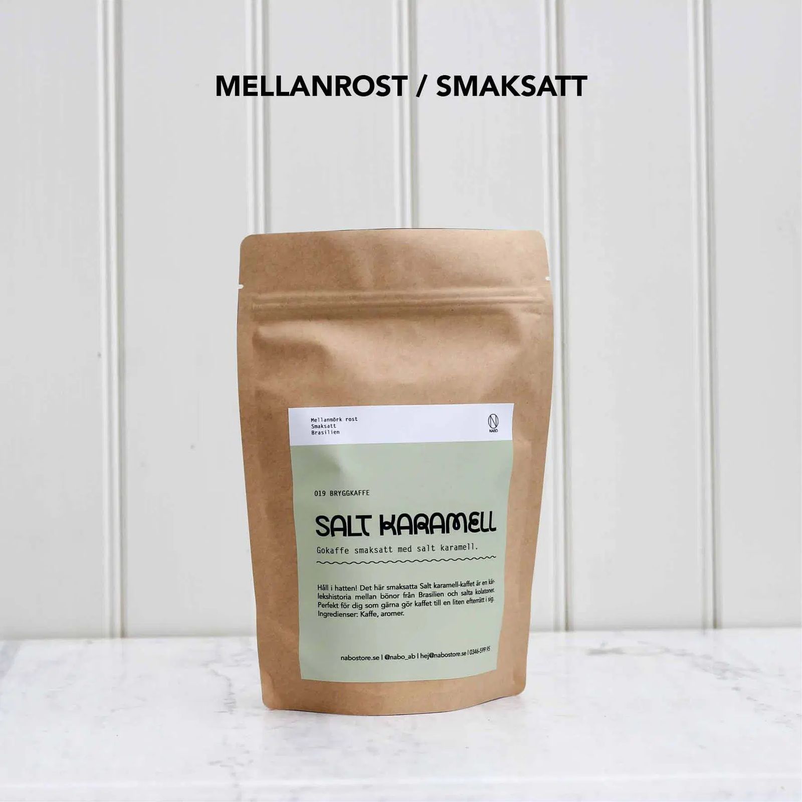 Håll i hatten! Det här smaksatta salted caramel-kaffet är en kärlekshistoria mellan bönor från Brasilien, Colombia, Guatemala och Indonesien. En klick grädde eller glass i kaffekoppen och desserten är klar! Ringlar du dessutom på lite hemkokt kolasås, så finns det ingen som kan motstå, vi lovar. Bönorna är certifierade av Rainforest alliance, high five på det!