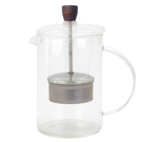 Vacker tekanna av glas med inbyggd, avskuvbar tebehållare. Lagom för 2 koppar te.
