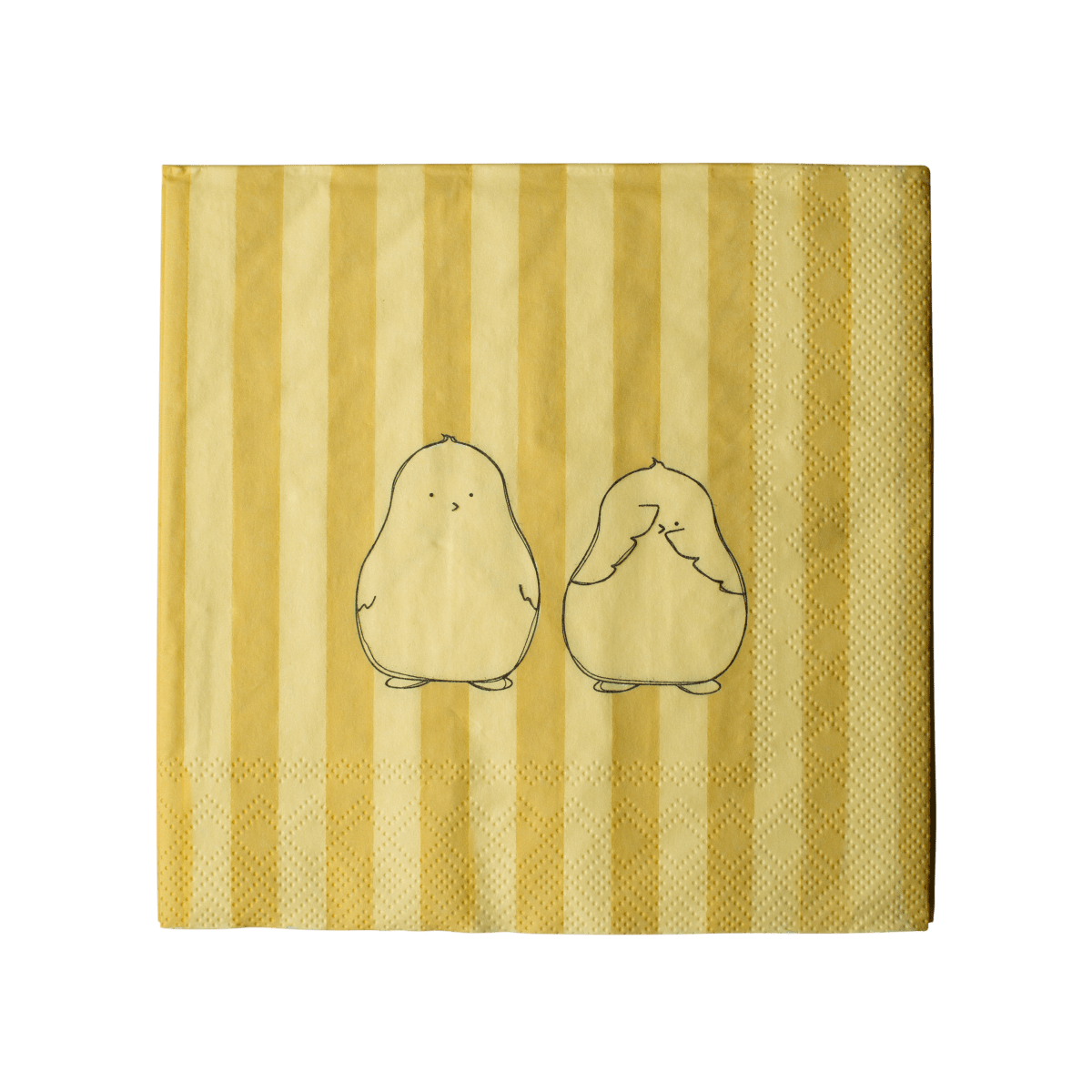 Charmiga servetter till påsk med två kycklingar i randigt gult. 17 x 17 cm. 20 st/förpackning. Från DBKD