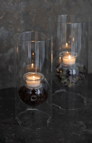 Glascylinder med ljushållare. En perfekt inredningsdetalj som är fin i sin enkelhet. Ljuskoppen är avtagbar vilket också ger dig möjlighet att dekorera inuti ljushållaren efter säsong och stil.