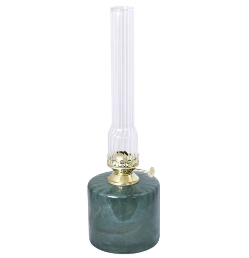Elegant fotogenlampa i vackert grönt räfflat glas och mässingsbrännare, inklusive en veke. Lampan är tillverkad av 50-60% återvunnet glas. Använd gärna tillsammans med Strömshagas lampolja, säljs separat.