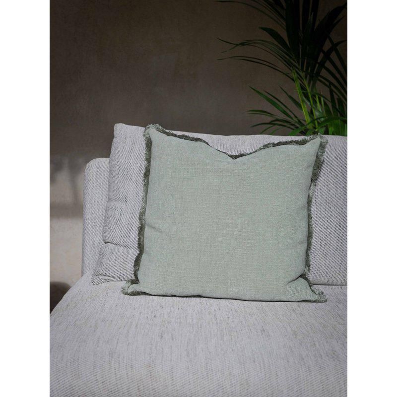 Enfärgat kuddfodral med en fin, subtil lyster, runtom löper en dekorativ, nätt frans som tillför en trendig och sofistikerad känsla.