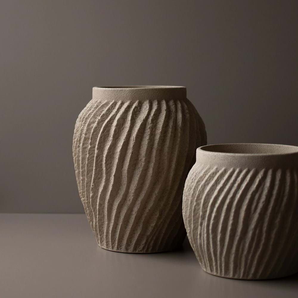 Raw vas är en handkarvad keramikvas med en autentisk känsla. Vasen har en räfflad struktur som bidrar till dess råa uttryck. Men de böljande mjuka räfflorna ger också ett lugnt och harmoniskt intryck. En tilltalande vas som är praktisk då den även fungerar utmärkt att använda som kruka.