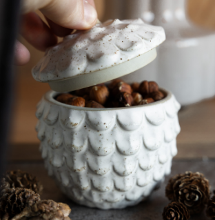 Keramikburk i form av en kotte. En både vacker och funktionell detalj, perfekt för att förvara godsaker, snacks eller som en dekorativ prydnad.