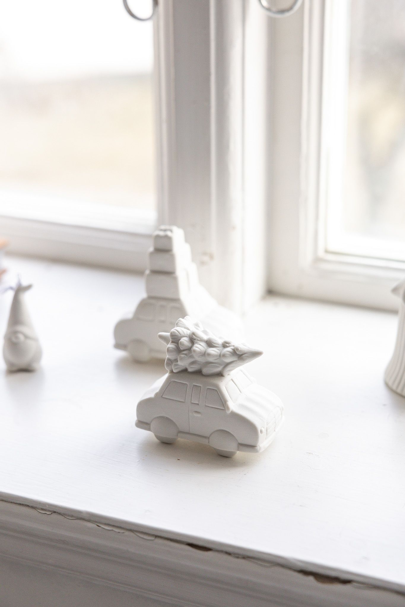 Dekorationsbil i matt keramik. Hjulstad passar perfekt i tomtebyn eller i ett stilleben på hyllan.