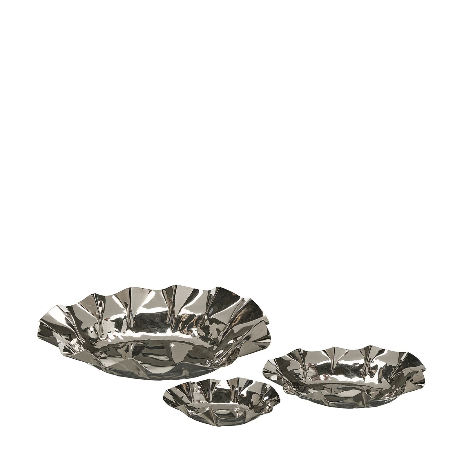Läkert kromfärgat fat från Wikholm form. Vackert och effektfullt för sig själv, eller varför inte lägga frukt eller nycklarna i? Finns i flera storlekar samt matchande ljusstakar till.