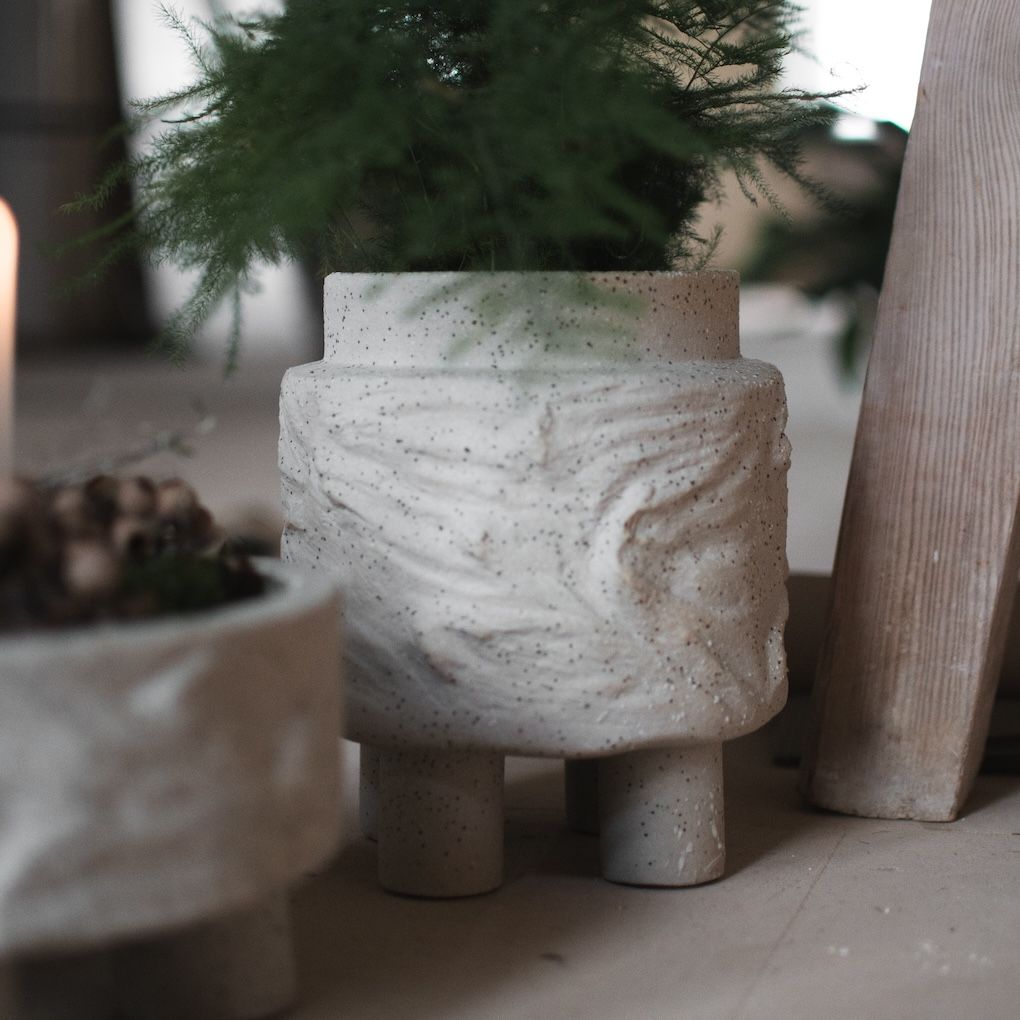 Clay kruka Ø18 cm från DBKD är en rund, känslfull kruka med en grov glaserad yta som ger ett handgjort uttryck och värme åt ditt hem. Den tydliga formen lyfter fram växternas gröna blad och ger en harmonisk känsla på fönsterbrädan, hyllan eller som samling på soffbordet. Perfekt för att framhäva både små och medelstora växter, samtidigt som den fungerar som en vacker inredningsdetalj som känns personlig och omhändertagen.