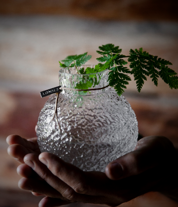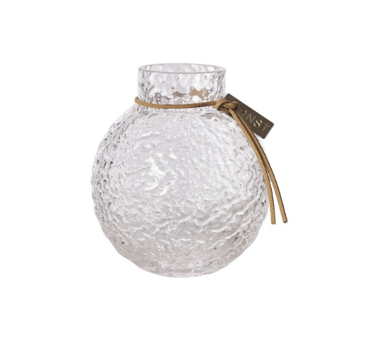 ERNST populära glasvas har nu kommit med en härlig struktur på glaset. Vasen drar verkligen blickarna till sig och tillsammans med en underbar bukett skapar den ett fantastiskt blickfång i hemmet. De mindre vaserna i samma serie går även att använda som ljuslyktor.