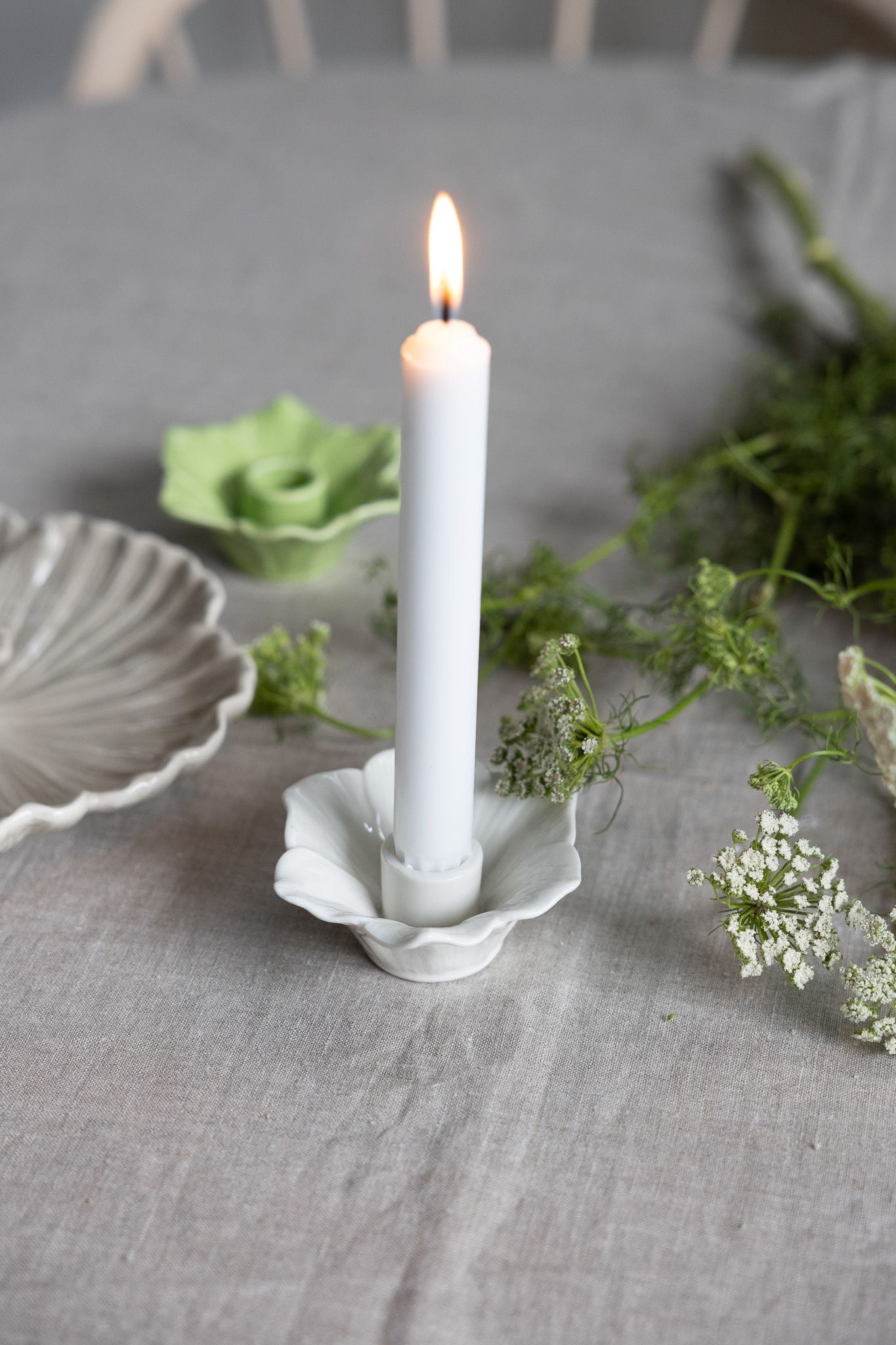 Glaserad ljusstake i keramik. Med inspiration från en blomma passar den fint i hemmet och skapar en härlig vår- och sommarkänsla. Placera den på byrån, matbordet eller ge bort den som en uppskattad present.