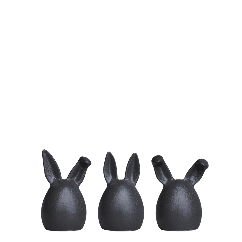 Triplets påskhare 3-pack från DBKD är ett set om tre söta dekorationer i keramik. De tre påskhararnas mjuka och minimalistiska silhuett med två kaninöron som är vinklade på olika sätt är en modern tolkning av den klassiska påskharen. De charmiga dekorationerna passar fint på bordet, byrån eller fönsterbrädan under påsk.
