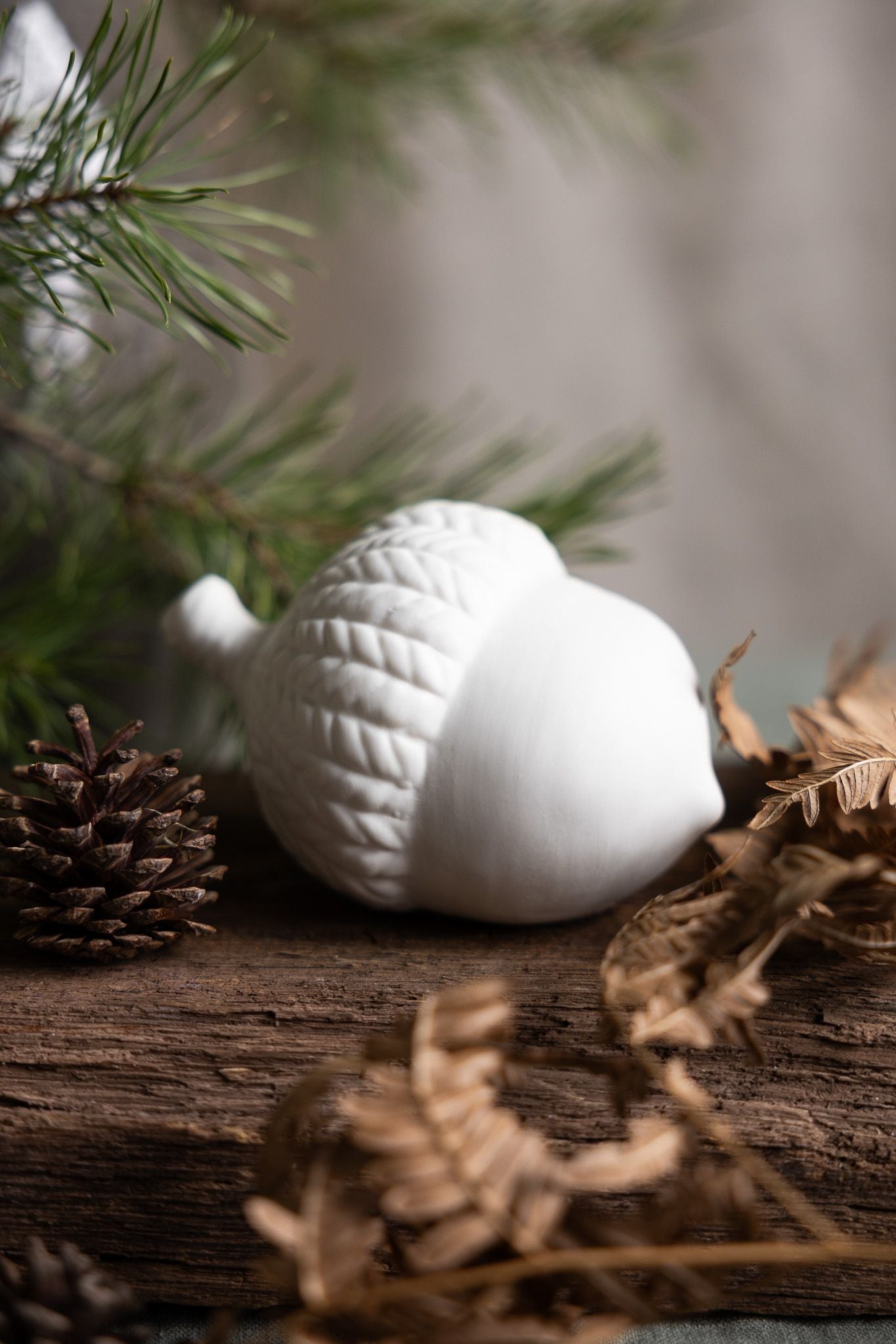 Dekorativ nöt / ekollon i matt keramik som passar i alla hem. Låt den stå på matbordet, i bokhyllan eller fönstret. Passar fint ihop med våra andra dekorationer.