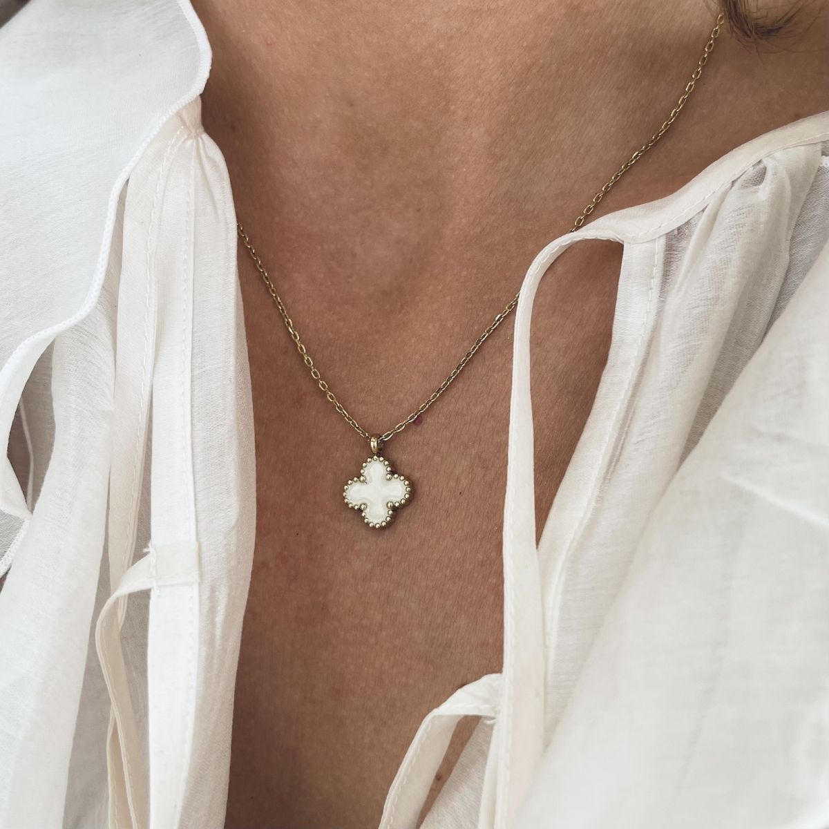 Clover halsband i guld med cremevit emalj.