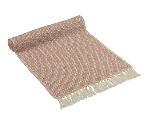 En stilren bordslöpare i 100% bomull med dekorativa fransar. Färgerna är mjuka och naturnära, med en palett som påminner om ljuva nyanser inspirerade av naturen.