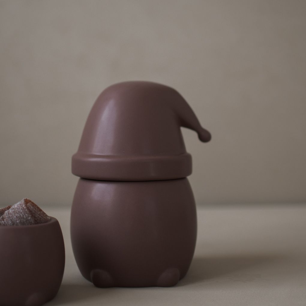 Eating Santa skål med lock stor från DBKD är en lekfull och dekorativ skål formgiven av Halina Fritsch som fångar julens glädje. Skålen i två delar fungerar lika bra som förvaring för julgodis som som en varm detalj på hyllan eller sideboardet.