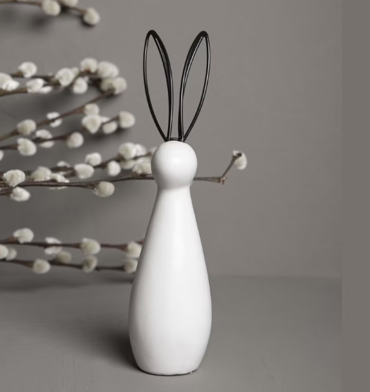 Julia kanin är en stilfull keramisk dekoration som passar perfekt till din påskdekoration! Med sina svarta metallöron och detaljerade ansiktsdrag är den en unik och söt dekoration som kommer att lysa upp ditt hem.