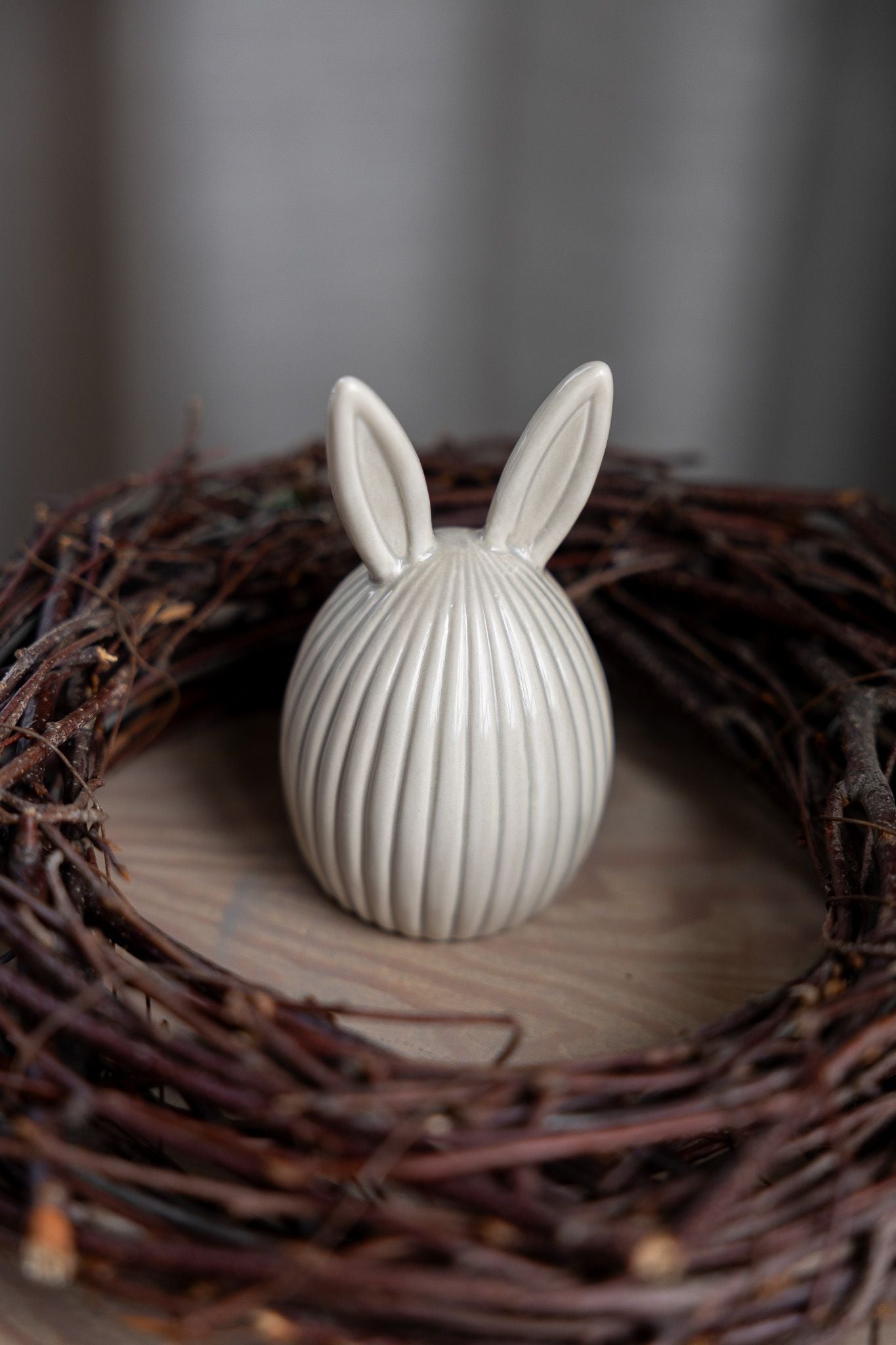 Glaserad dekoration i keramik. En söt liten kanin som gärna får tas fram vid påsk, år efter år. Passar fint i sin enkelhet men även i grupp med våra andra påskdekorationer.