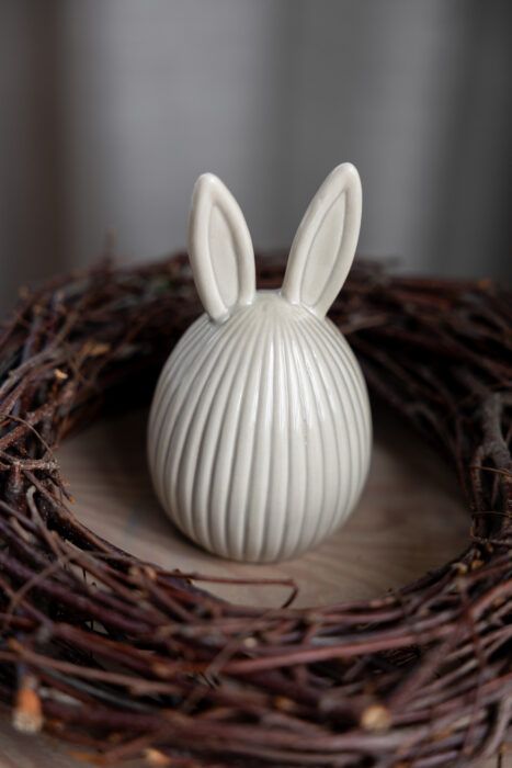Glaserad dekoration i keramik. En söt liten kanin som gärna får tas fram vid påsk, år efter år. Passar fint i sin enkelhet men även i grupp med våra andra påskdekorationer.
