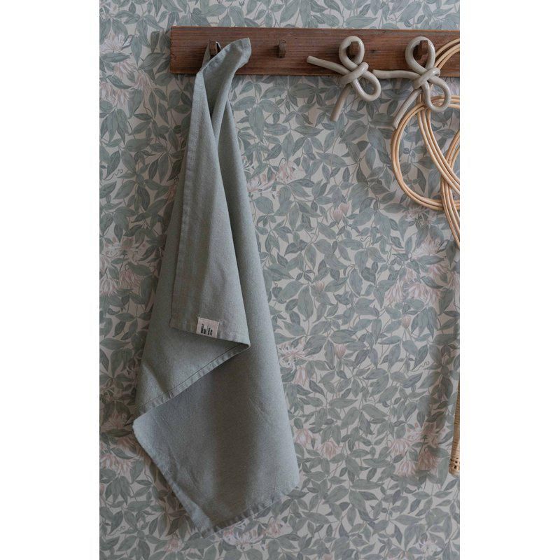 En kökshandduk tillverkad av återvunnen bomull och återvunnen polyester är en miljövänlig och hållbar produkt. Den har en lyxig linnekänsla som ger den en sofistikerad touch. Den återvunna bomullen ger handduken dess naturliga känsla och absorberande förmåga, medan den återvunna polyestern ger den slitstyrka och hållbarhet.